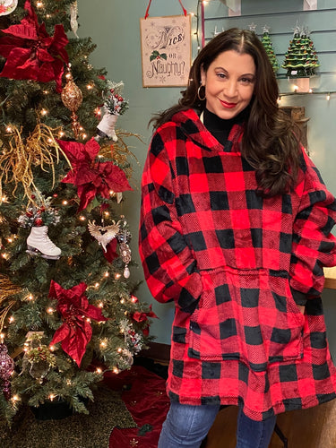 Luxurious Faux Fur And Sherpa Lined Blanket Hoodie Jacket (Buffalo Plaid)